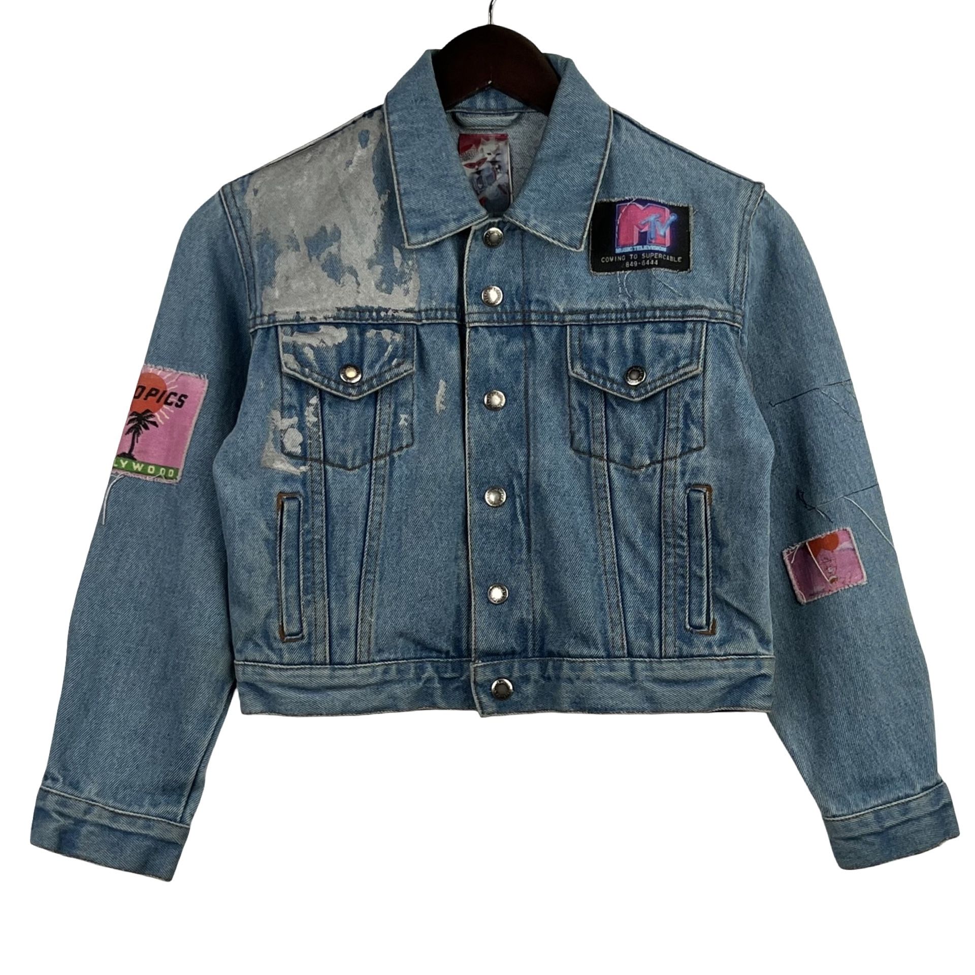 VTG "Hey Babe" branded Kid’s denim jacket featuring an MTV patch -8y-
