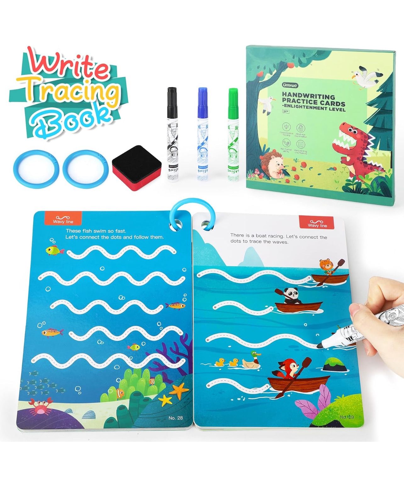 Our tracing book with 11 themes and 60 pages of brightly colored, vivid drawings. This tracing workbook is infinitely engaging for preschoolers. Learning resources from horizontal lines to letters and numbers, there's plenty to learn and explore. Learning to write for toddler toys age 1-2 2-4. 【Erasable and Reusable】The included dry-erase markers and eraser make this handwriting practice book for kids eco-friendly and cost-effective choice for parents. Your child can learn and practice everything in the preschool book at unlimited times. 【Safe and Certified】This URMYWO educational tracing workbook has passed international certification for children's products, so you can rest assured that it's safe for your child to use. The thickened glossy cardboard and rounded corners are designed to withstand rough handling.