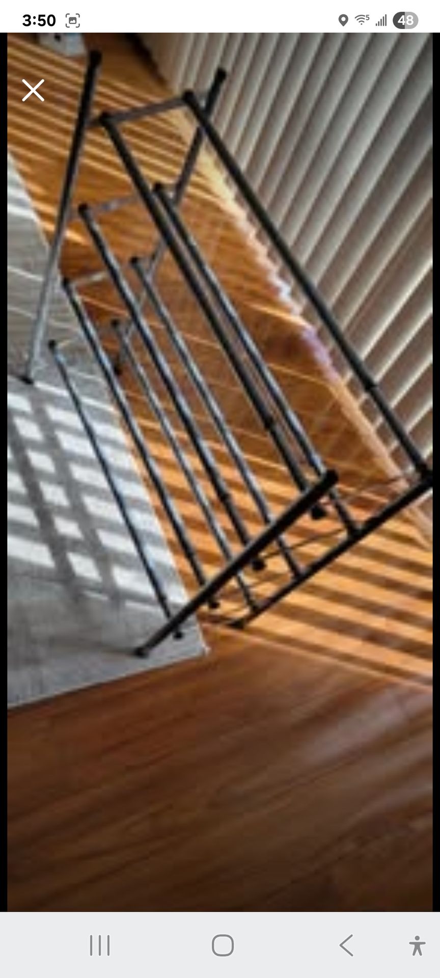 Shoe rack, extends to 46 inches wide. Just missing a rubber tip, but doesn't affect use. $10 cash only