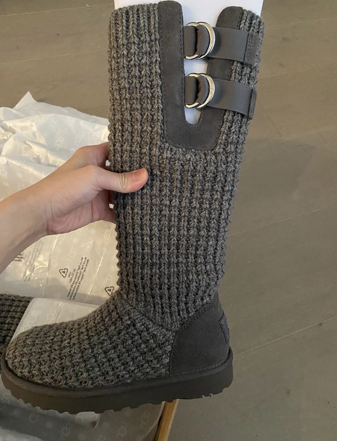 Brand new Womens UGG Classic Solene Tall Knit Boot CHRC Charcoal Gray size 6