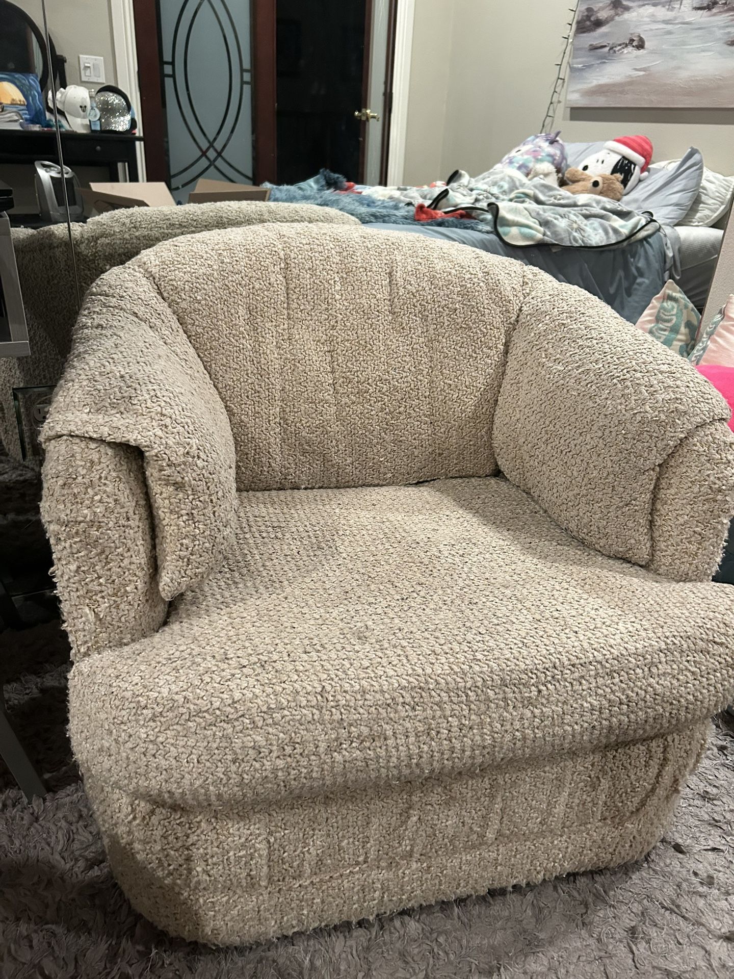 $35 OBO white beige comfy swivel chair barely used it was more of a decoration