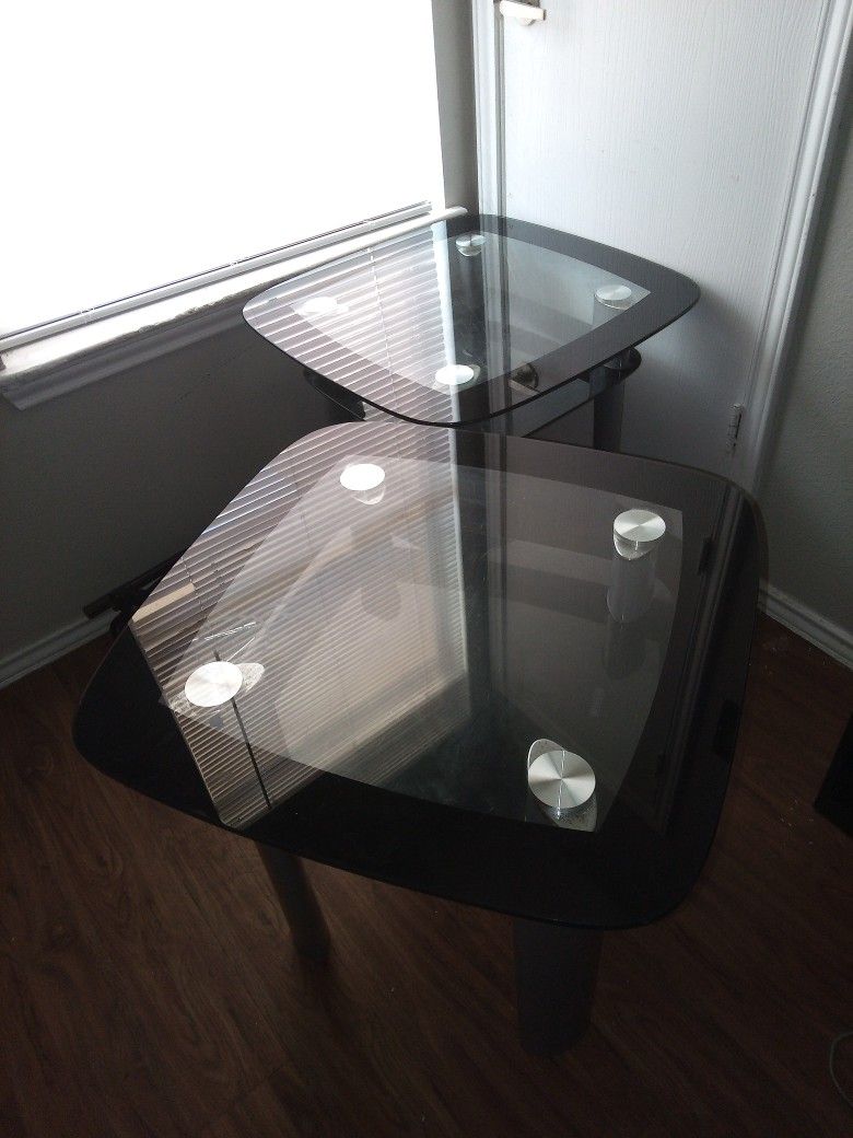 2 Glass end Tables/side tables in good condition they do have wear on top and around body but other than that in good condition. Pick up weslaco $20 each/cu. O. $30 x 2 24in x 24in top 23in. Tall