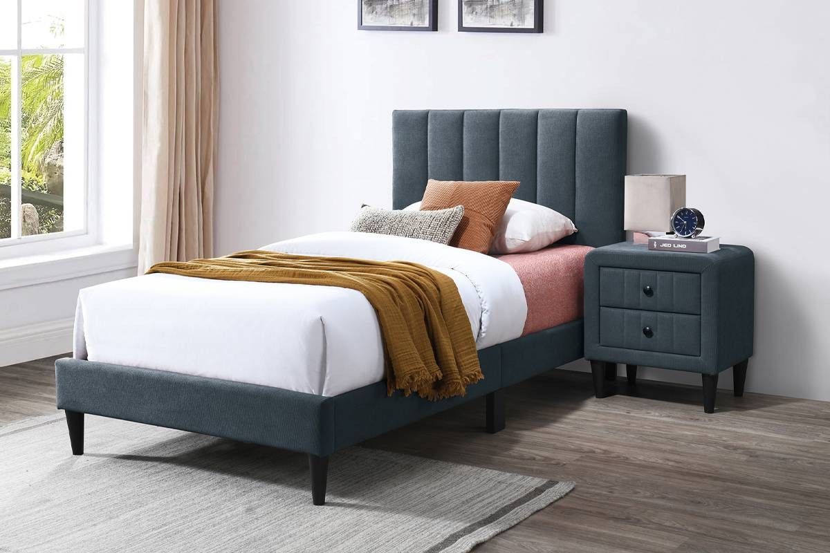 ✅️✅️Charcoal brushed linen fabric upholstered twin bed frame set vertical channels tufted headboard✅️