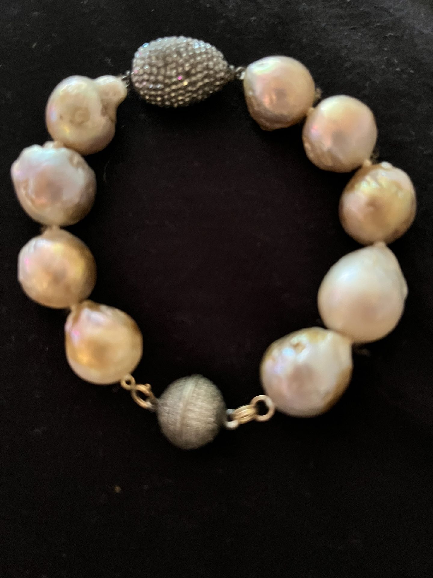 This is a gorgeous bracelet Genuine broke pearls Purchased for $650 On Worth Ave in Palm Beach