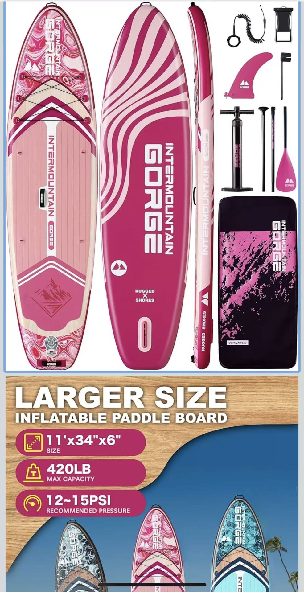 11'x34 Ultra Wide Paddleboard, Inflatable SUP&430lb Capacity for All Skill, Stand-up Paddle Board for Yoga/Family, EVA Deck, US Fin, High-Pressure Pump, 100L Bag, Safety Leash$50