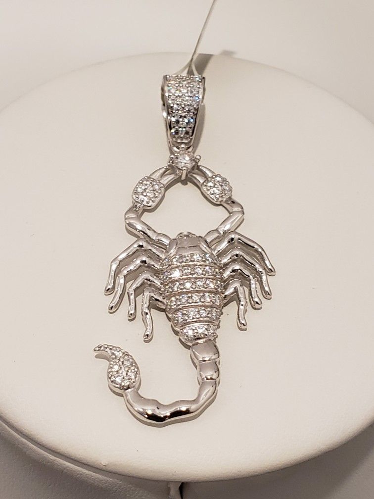 Sterling Silver Scorpion Mossainite Pendant. Weight 6.30gms Please check the images to assume the size compared with quarter and dime Stones are Mossainite 1.09CTW 100% Authentic Mossainite Silver Pendant.