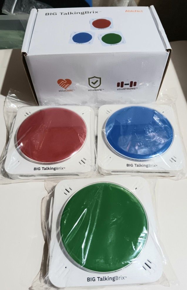 The AbleNet BIG TalkingBrix is a powerful single-message speech-generating device designed for individuals who need clear, accessible communication support. Featuring an extra-large activation surface and durable construction, this assistive technology tool empowers users with motor challenges, developmental disabilities, or communication needs to express themselves with ease. Features: Amplified dual speaker sound output. A record lock feature prevents accidental message erasure. They have a long-lasting, rechargeable battery that can be charged using a micro-USB cable (included). They feature internal magnets for easy connection. Backed by Ask Ergo Works' 30 years of ergonomic and accessibility expertise, the BIG TalkingBrix combines intuitive design with proven assistive technology to support independence, learning, and meaningful interaction in classrooms, therapy sessions, and daily life. Why You'll Love It: Extra-large 5-inch activation surface — Easier to press for users with limited fine motor control or visual impairments Single customizable message — Record up to 2 minutes of personalized speech, sounds, or phrases for flexible communication Clear, high-volume audio output — Ensures messages are heard in busy classrooms, therapy rooms, and home environments Durable, ergonomic design — Built to withstand repeated use while reducing strain on hands and wrists Supports communication development — Ideal for individuals with autism, cerebral palsy, apraxia, or other speech and motor challenges