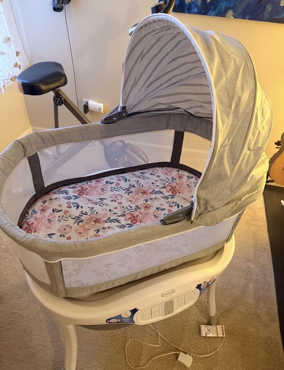This bassinet was purchased a few years ago for over $350. Used for two children. Everything works but the vibration, which never worked. Otherwise in excellent condition. Rocks at 3 different speeds. Saved our lives so we could get some precious sleep!