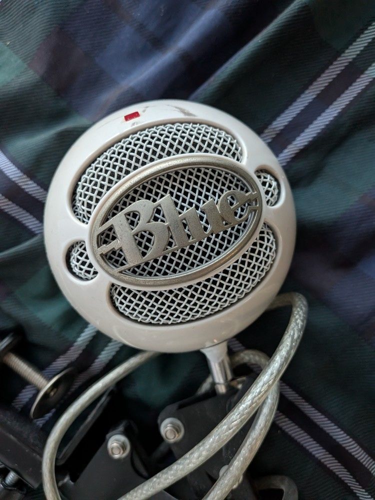 Blue snow ball microphone π€ ποΈ with boom arm Okay condition both items works as suppose Do not need anymore Pairing with coiled cable for keyboard USB c port, can be used for consoles PS4 Xbox PC gaming , check photos defect on USB c port but works as suppose Tags: clear audio streaming recording equipment desktop gaming broadcast discord twitch stream Skype zoom meetings Crystal clear audio quality