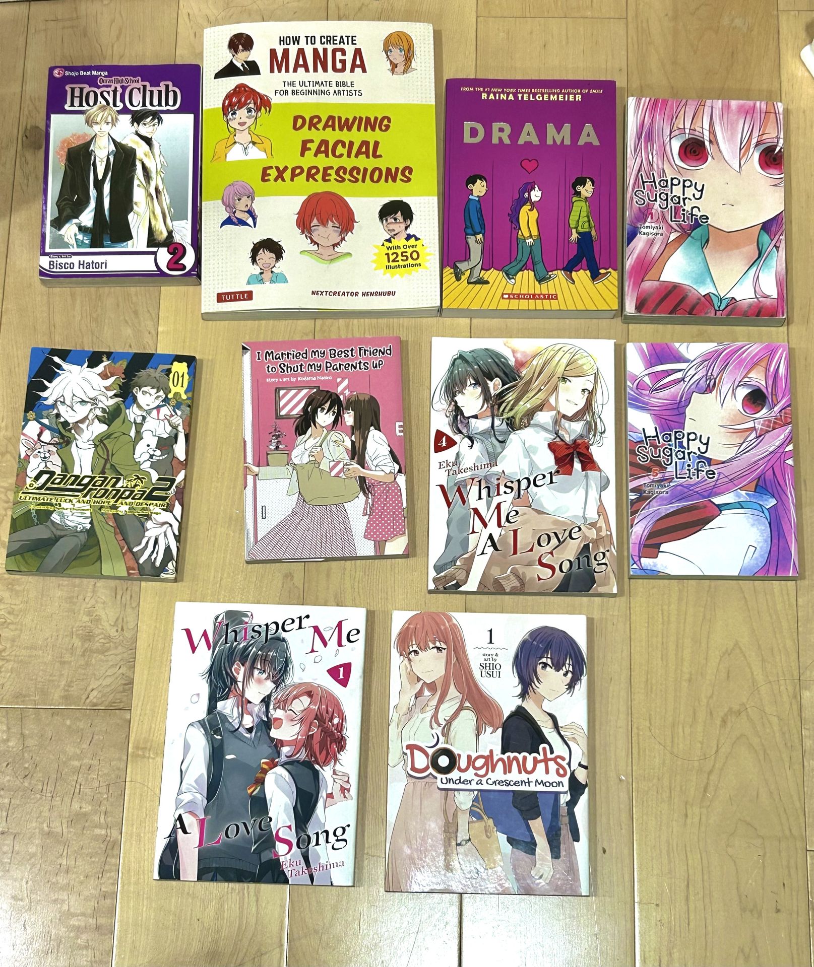12$ Whisper me a love song #1 12$ Whisper me a love song #4 12$ Doughnuts under a crescent moon 10$ Happy sugar life #1 10$ Happy sugar life #5 10$ I married my best friend to shut my parent up 12$ Danganronpa- ultimate luck & hope & despair 8$ Drama 16$ How to draw expressions anime Dm if you want a specific book. I can also do deals if you buy 2 or more books.