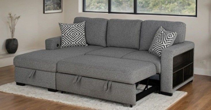 Brand New Grey Sectional Sofa Storage Sleeper
