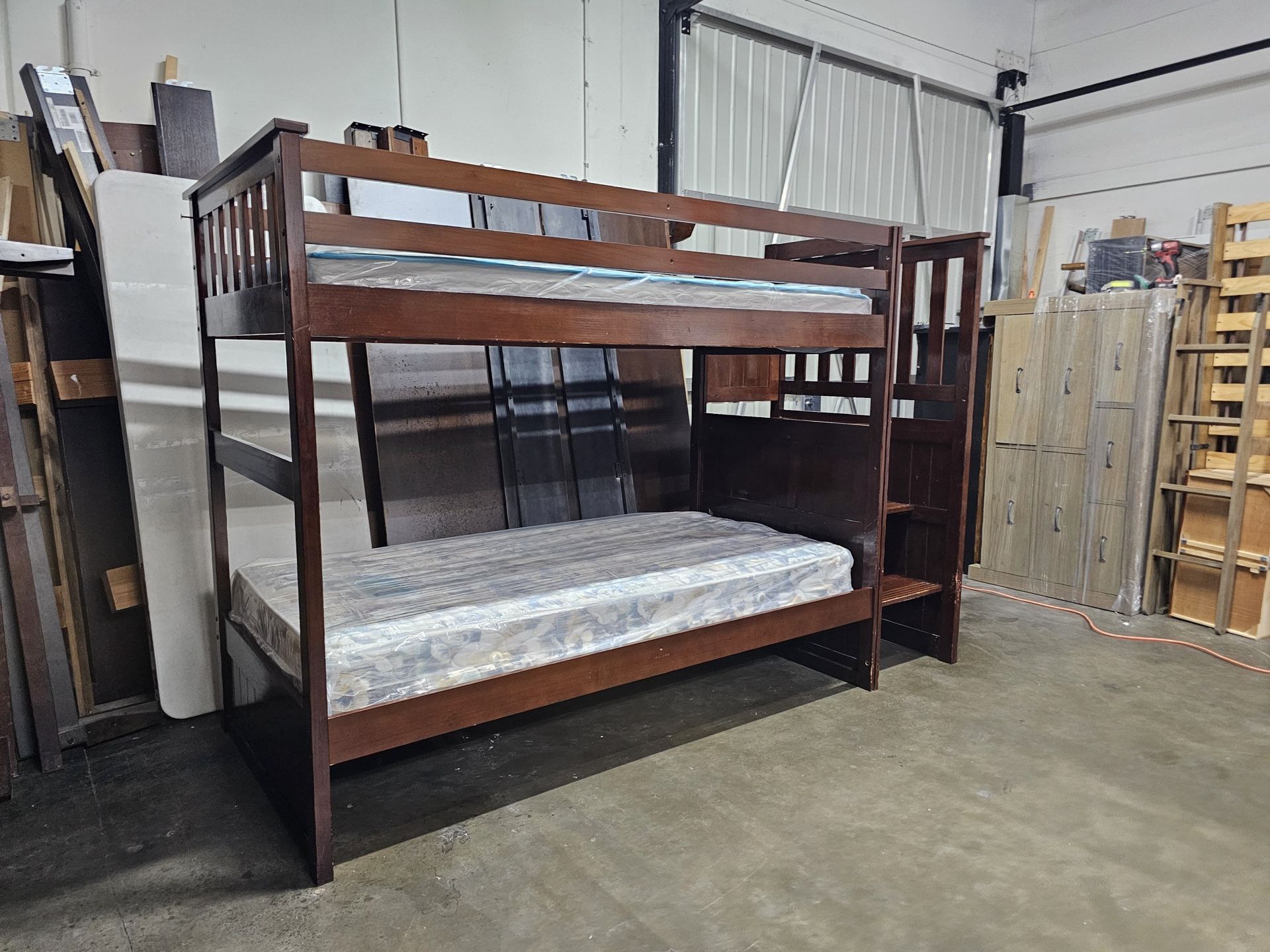 twin bunk bed with mattress Everything used good condition Solid and nice wood Both mattress included Ladder with drawers very safe $399 firm price Delivery available for extra fee