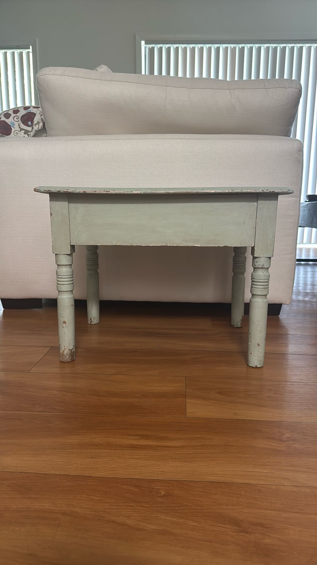 Side table 24 W x 17 D x 17 H. Great for a DYI project or just on its own. Has a lot of character. I just don’t have a place for it anymore.