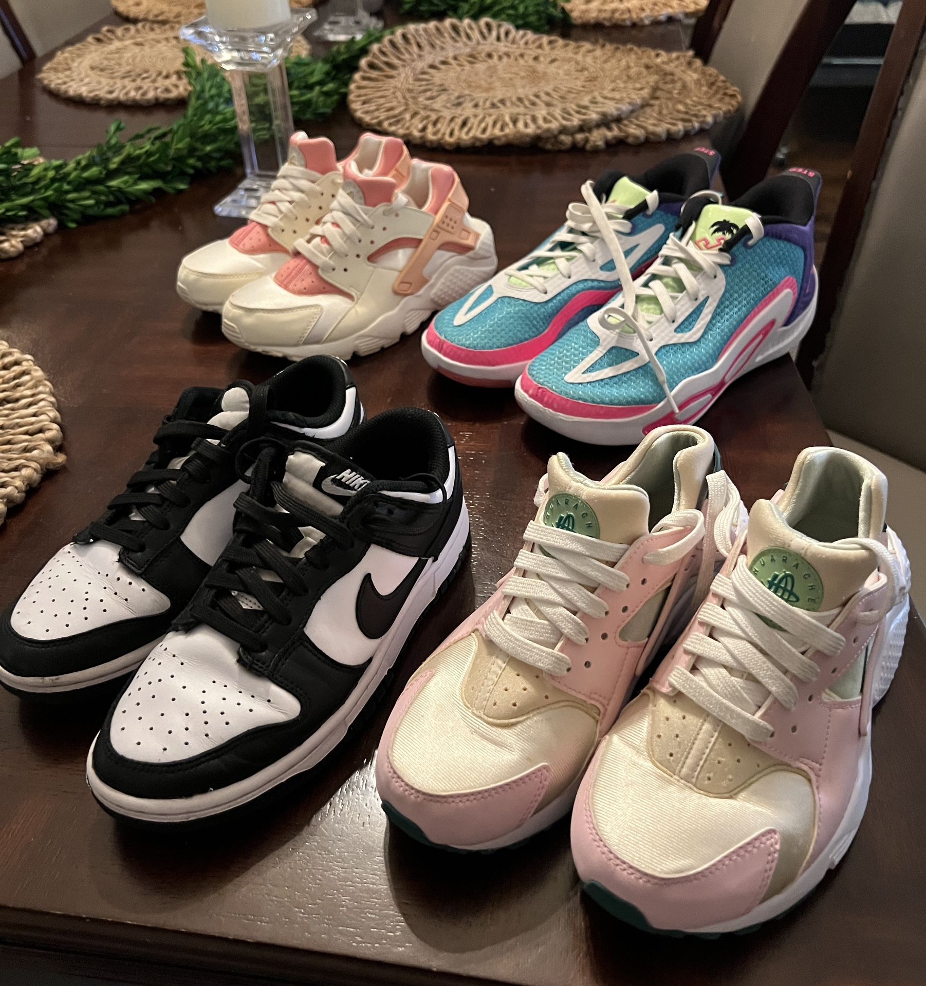Daughter had a growth spurt Selling almost new shoes that fit her 6 months ago All shoes for $150, individual prices below Air Jordan - Tatum - retail $120 - asking 60 size 5.5Y Pandas - Nike dunk - reatil $100 - asking 50 Size 6 Nike Huarache - watermelon - retail $120 - asking 50 size 5Y Nike Huarache - peach - reail - $120 - asking $60 - size 5.5Y I'm in Keller