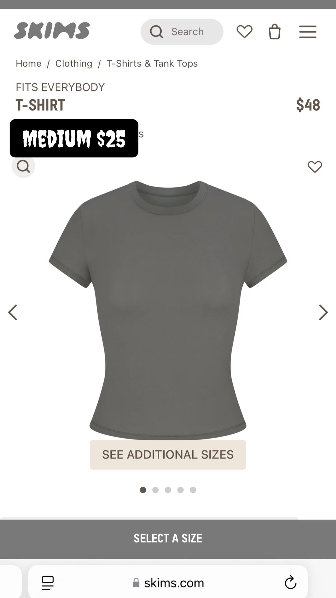 skims fits everybody t shirt in color gun metal size medium 2 available $25 each