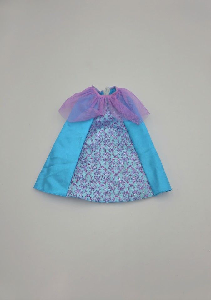 The Barbie 2007 Island Princess Rosella Skirt (K8103) is a stunning blue and purple glitter long skirt designed for dolls. This skirt is part of the Island Princess for the Barbie franchise and was manufactured in 2007. Perfect for Barbie collectors or enthusiasts, this skirt adds a touch of magic and glamour to any doll's wardrobe. The vibrant colors and glitter details make it a standout piece for those who appreciate doll clothing and accessories. Good condition.