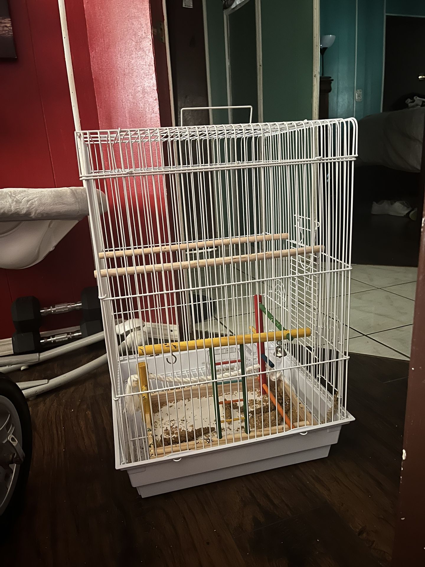 Medium bird cage. Like new. Upgraded to a bigger cage so don’t need this one anymore!