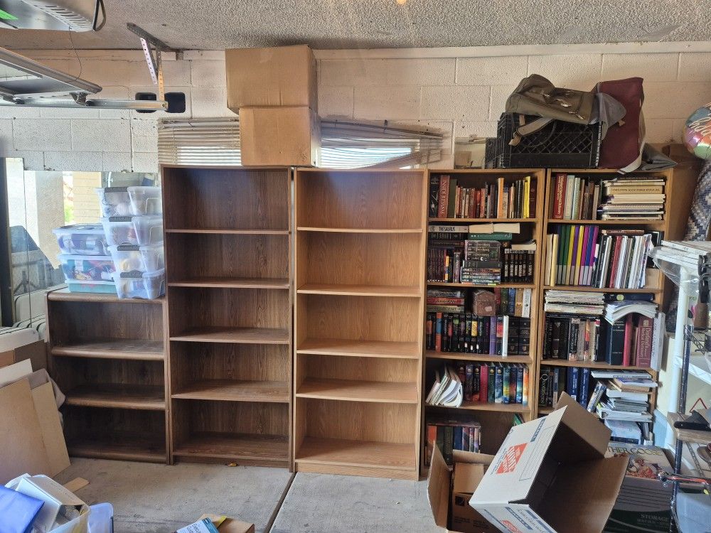 5 shelf book shelves 6ft tall x 30 inch wide x. 12 inch deep 1 gray bookshelf 60 in tall x 30 inch wide x 15 in deep 1 3-shelf case 42 inch tall x 30 inch wide x 12 inch deep $20 each, any combo or all.