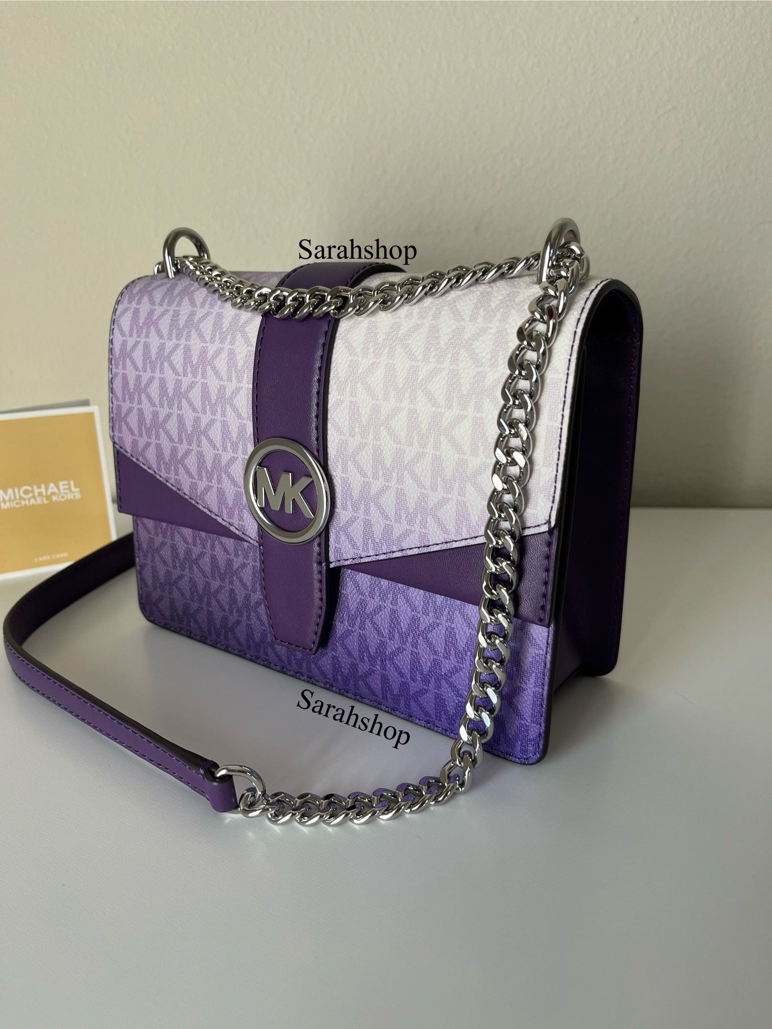 100% authentic Brand new with tags Comes in original packaging Greenwich Small Flap Crossbody Dark purple multi and silver hardware Approximate Measurements: 8" (L) x 6" (H) x 2.5" (W) Chain strap with 22” drop