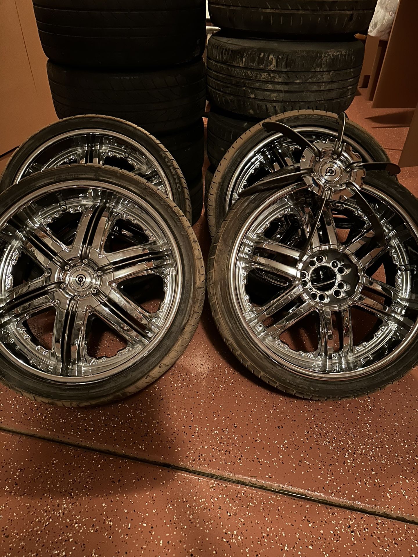 In good condition, no major scratches nor scuffs. Has customizablew inserts. Fits bolt patterns 5x4.5 and 5x4.25 inches.
