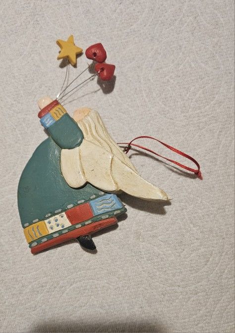 VTG FOLK ART MIDWEST FLYING QUILT ANGEL ORNAMENT DECOR 5"