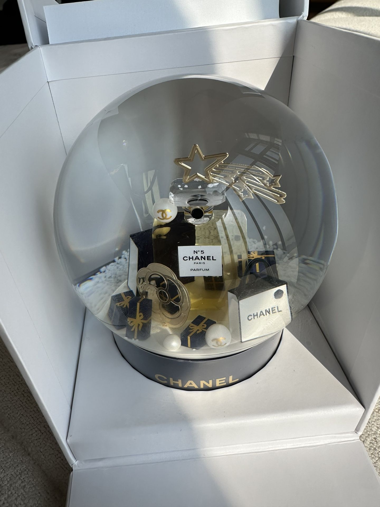 This is a Chanel-themed snow globe ornament, usually given out as a limited-edition gift by Chanel Beauté during holidays or VIP events (GWP / Gift With Purchase). It is not sold at retail.
