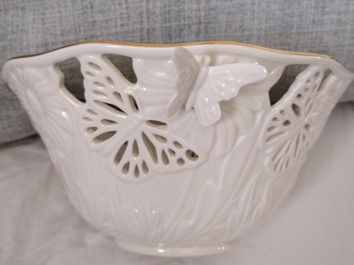 Stunning Lennox 24th karat gold trim butterflies and lace centerpiece bowl. Very elegant and unique in style. 10x 5 1/2. Great for mother's Day gift, anniversary gift, wedding gift for birthday gift.