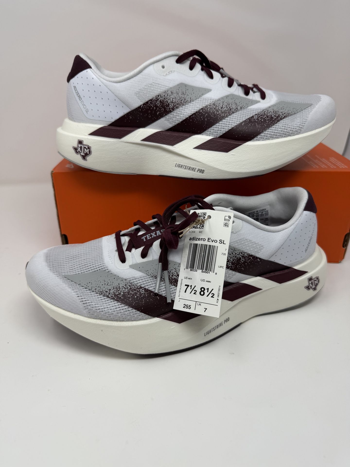 ADIZERO EVO SL SHOES Texas a&m Men’s size 7.5 Women’s size 8.5 Brand new no box Running shoes zapatos de correr