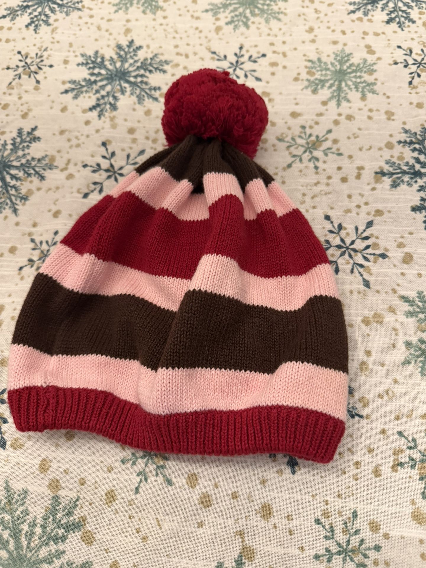 Gymboree Girls Sweet Treats Red, Pink, Brown Striped Pom Pom Knit Hat