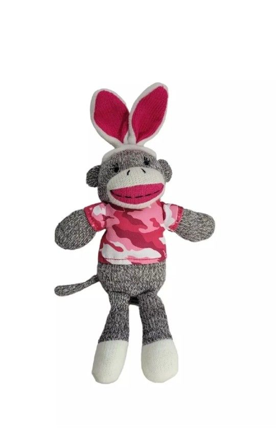 Dan Dee Sock Monkey Plush Bunny Rabbit Ears 13"H Pink Camouflage Stuffed Animal Condition: Pre-owned, good condition, clean, no smells, no rips, no stains, the tush tag has a sharpie mark Measures: 10" H Sock Monkey without Ears Bunny 13" H with Ears Bunny aprox Please check the photos well before buying. I can do bundles and combine the shipping . Smoke-free home You will receive the exact item shown in the photos.