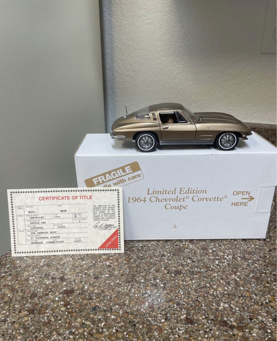 DANBURY MINT 1964 CHEVROLET CORVETTE COUPE SADDLE TAN LIMITED EDITION SCALE 1:24 ORIGINAL BOX AND PAPERWORK