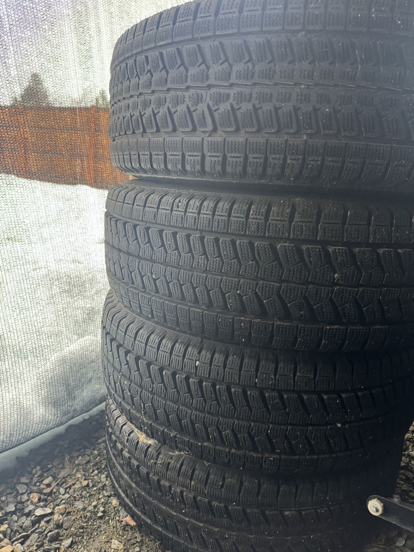 Full set of mounted and balanced Blizzak studless snow tires used one winter on 20” Nissan Titan XD Platinum Reserve wheels/TPMS sensors, and hubs. Load range E 10 ply. Get set up with a separate set of wheels and tires for winter and install yourself rather than spend half a day and $100 waiting for the tire store to do it twice a year. These tires work every bit as good as studded tires. Must have if you’re in the snow/ice a lot. 265/60-20
