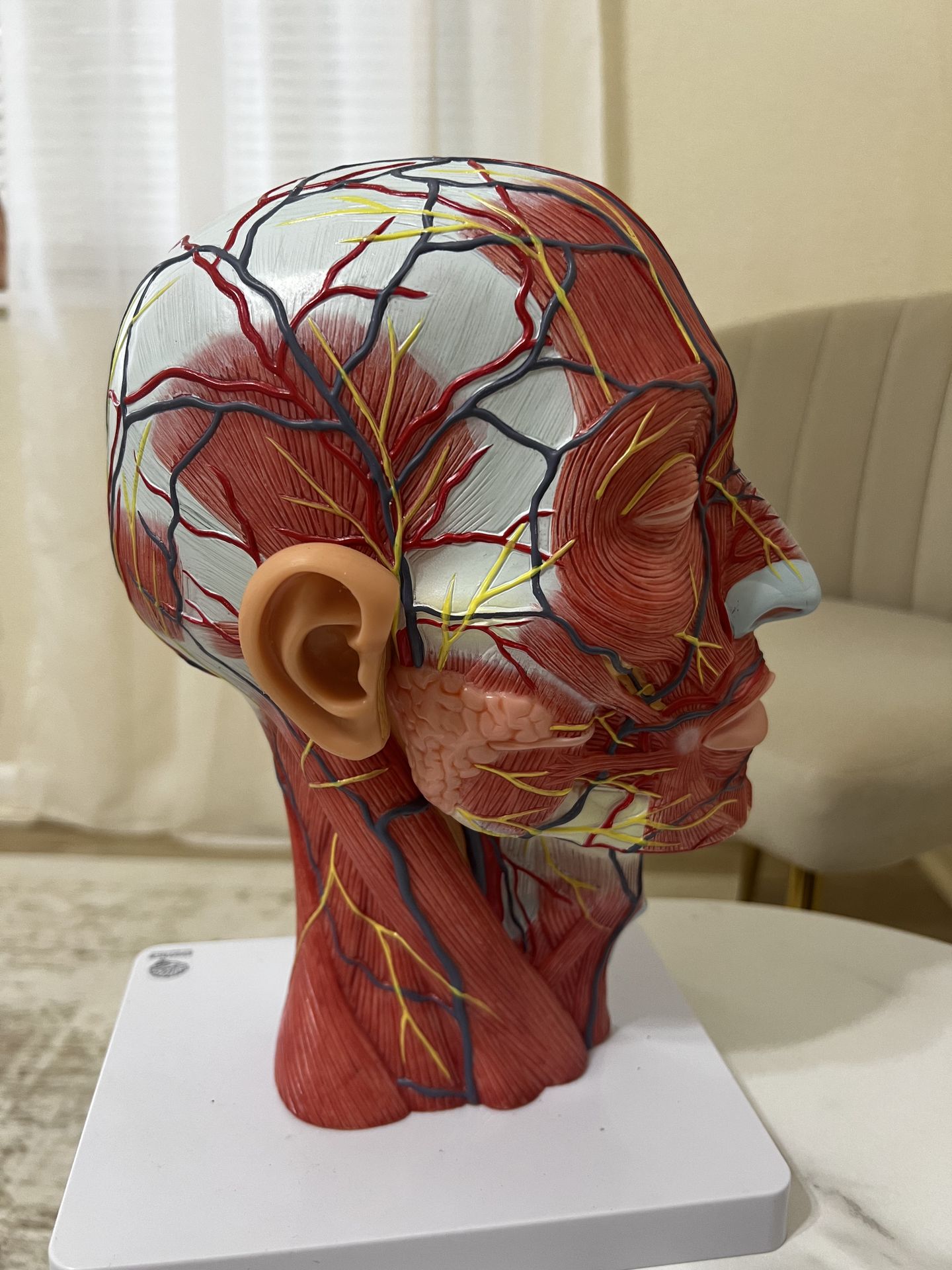 Human Half Head Superficial Neurovascular Model with Musculature, Anatomical Head Model for Medical Biology Anatomy Education