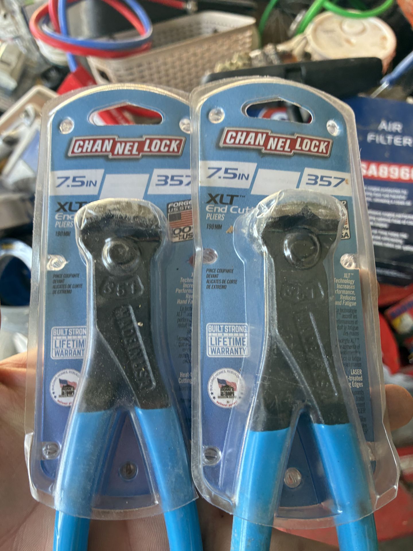 Brand new Channel Lock XLT End Cut Pliers. Two of these 7.5 inch pliers, model 357. Still in original packaging. Built strong with lifetime warranty. Made in USA from forged US steel. XLT technology for better performance and less hand fatigue. Price negotiable