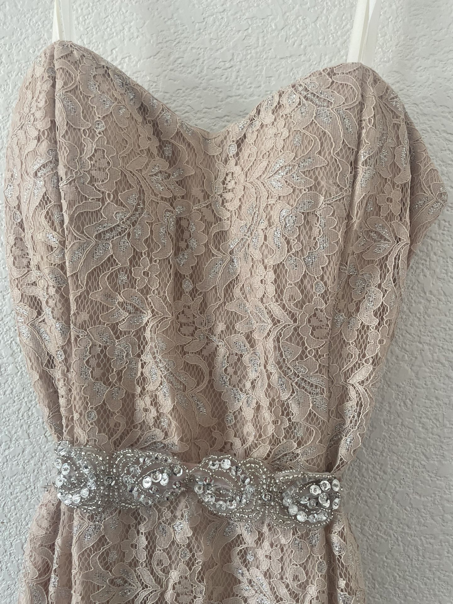 Rose pink prom dress Has a beautiful embellished belt Bought for $350 Worn only once Trail needs to be cleaned