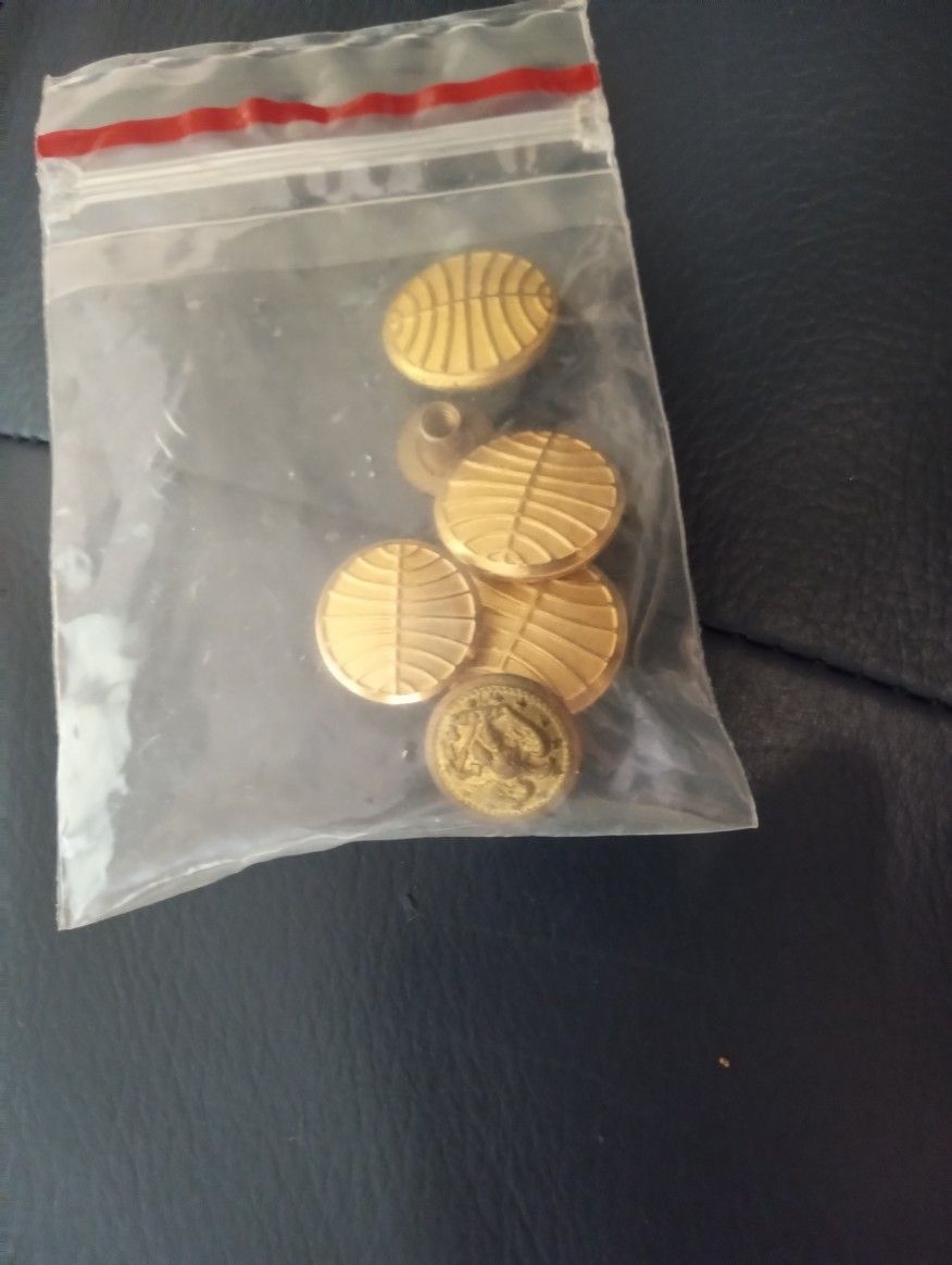 Still sealed in their original packaging three large buttons with the standard shank on the back, one smaller with a screw back and another with a screw back about the same size as the small button but with a raised American eagle.