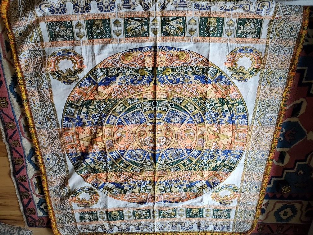 We bought this in chichen itza a couple years ago but we are redecorating in a color scheme that totally cant work with the colors on this beautiful tapestry. Hecho de mexico