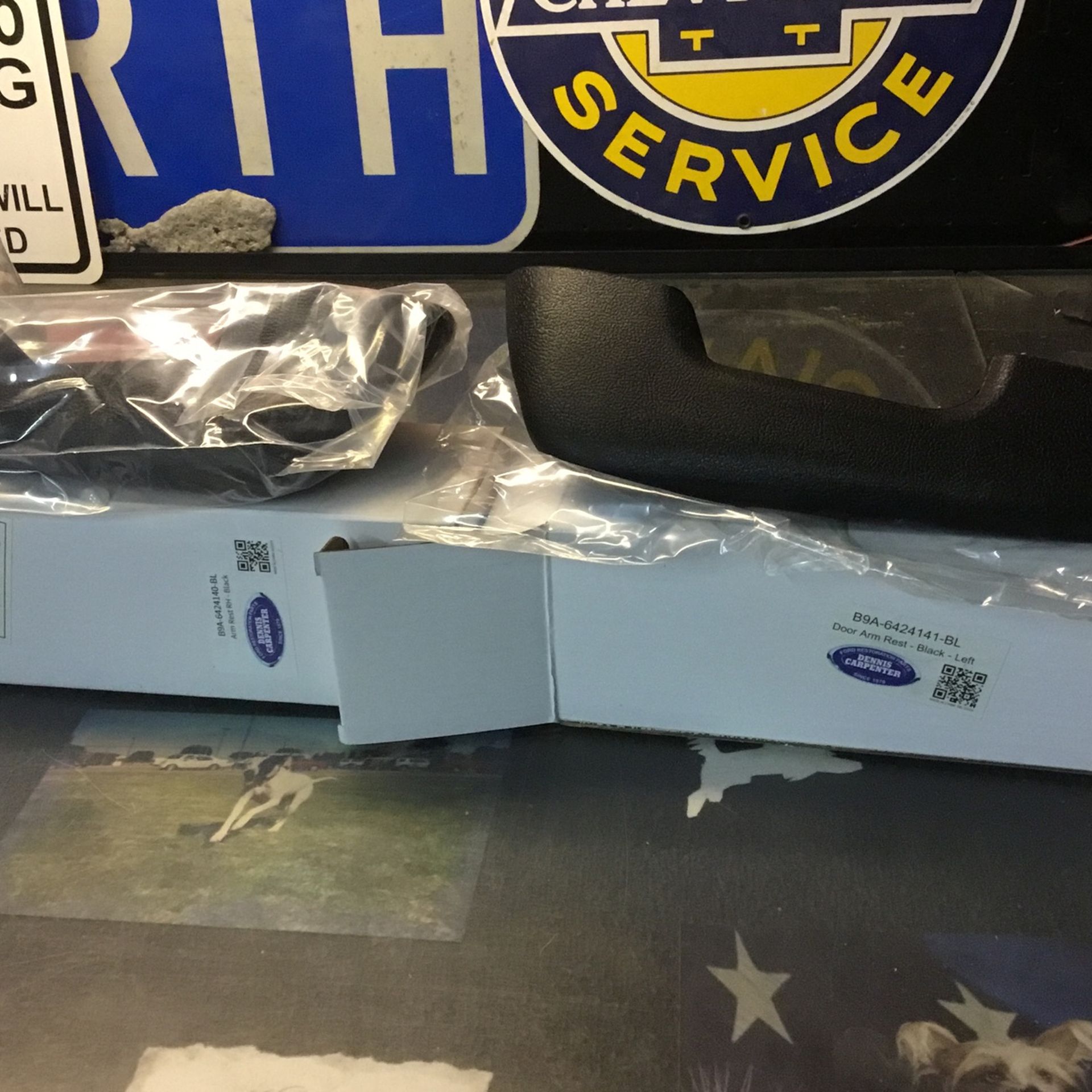 Right and Left set . New in the box arm rests. Black - 1957-69 Ford Truck, 1966-67 Ford Bronco, 1959-64 Ford Car ,,, I purchased these by mistake for a late E100 .