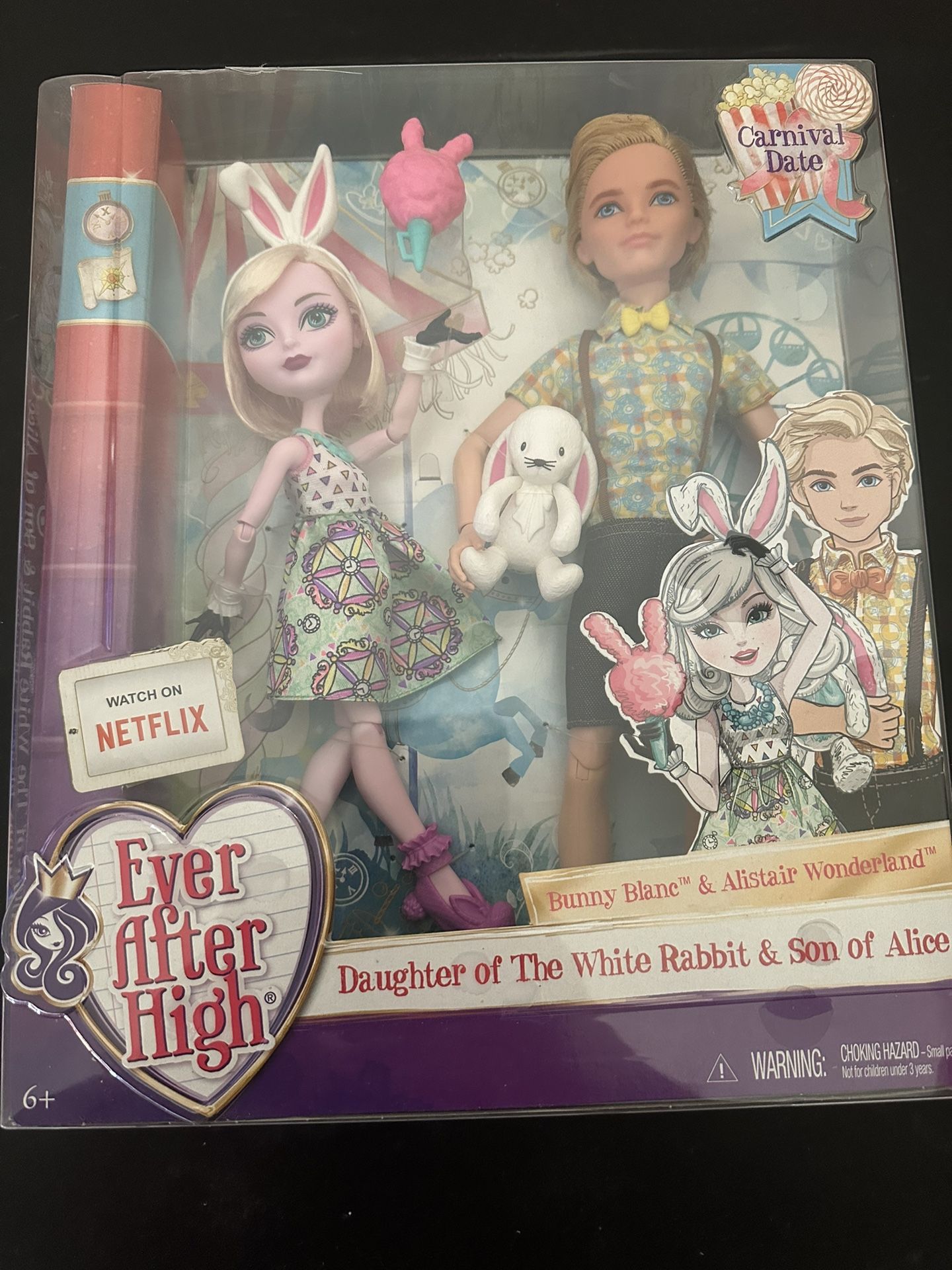 New, in box, never been open Ever After High Carnival date, Alistair and Bunny Wonderland doll set. From a smoke free, pet free home. Serious Inquiries Only Please. -Pick Up Only-