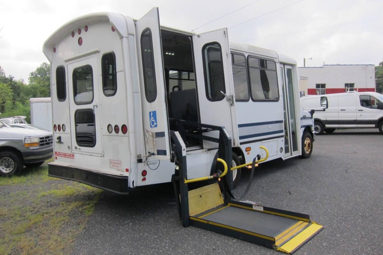 NO HASSLE PRICE ! 2014 FORD E450 SUPER DUTY DRW RAMPBUS,ONE OWNER,CHALLENGER BUS CONVERSION,6.8 LITRE[GAS],AUTOMATIC W/TOW OPTION,DUAL AC/HEAT,PS,PM,POWER BUS DOOR,CRUISE,TILT,AM-FM STEREO/MP-3/CD/DISC CHANGER W/AUXILIARY JACK,ABS,DRIVER AIR BAG,PRIVACY GLASS,LED INTERIOR LIGHTS,NEW TIRES.RICON POWER RAMP,SEATS 13-PASSENGERS/2-WHEELCHAIRS.
