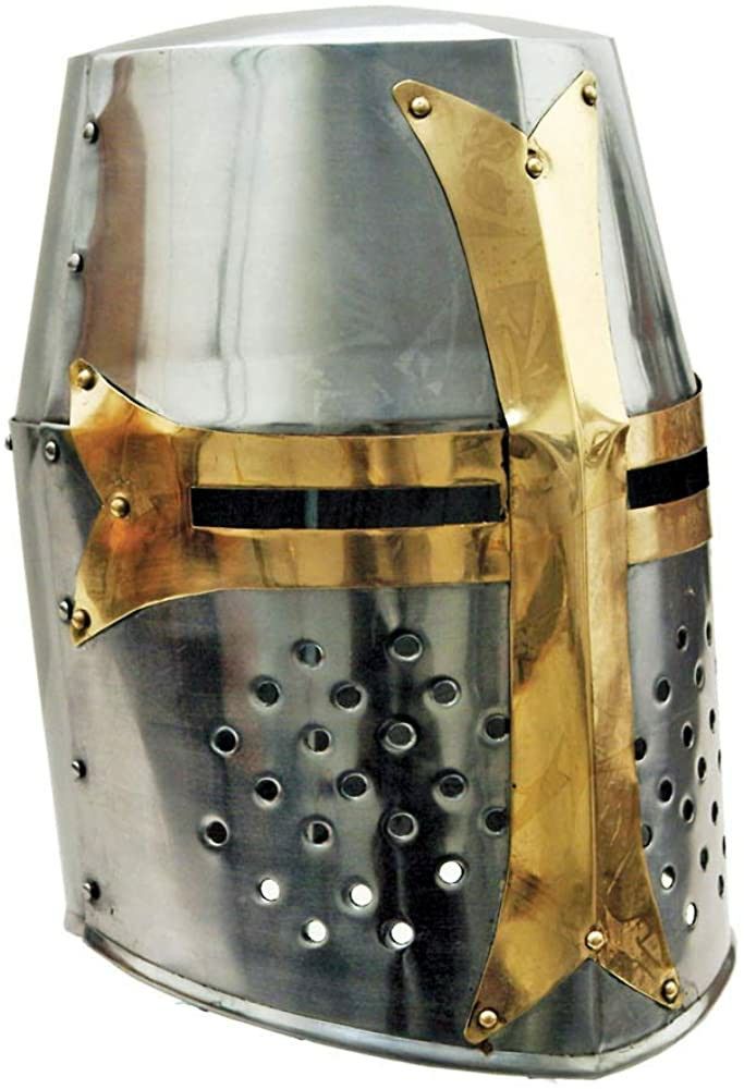 SZCO Supplies 14” Decorative Barrel Brass Helm Crusader Helmet *New*