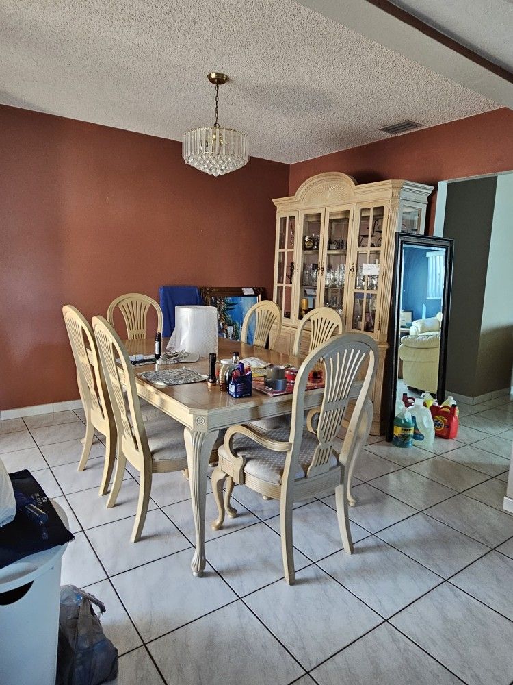 All pieces are from the late 90s, gently used and sturdy. Ready for immediate pickup. Dining set includes extra leaf, 6 chairs, and hutch. $600 Couch set: $500 Entertainment set: $400 Bedroom sets: Black $300 Beige $400 Wood: $500 Cash or Zelle only. Serious buyers only.