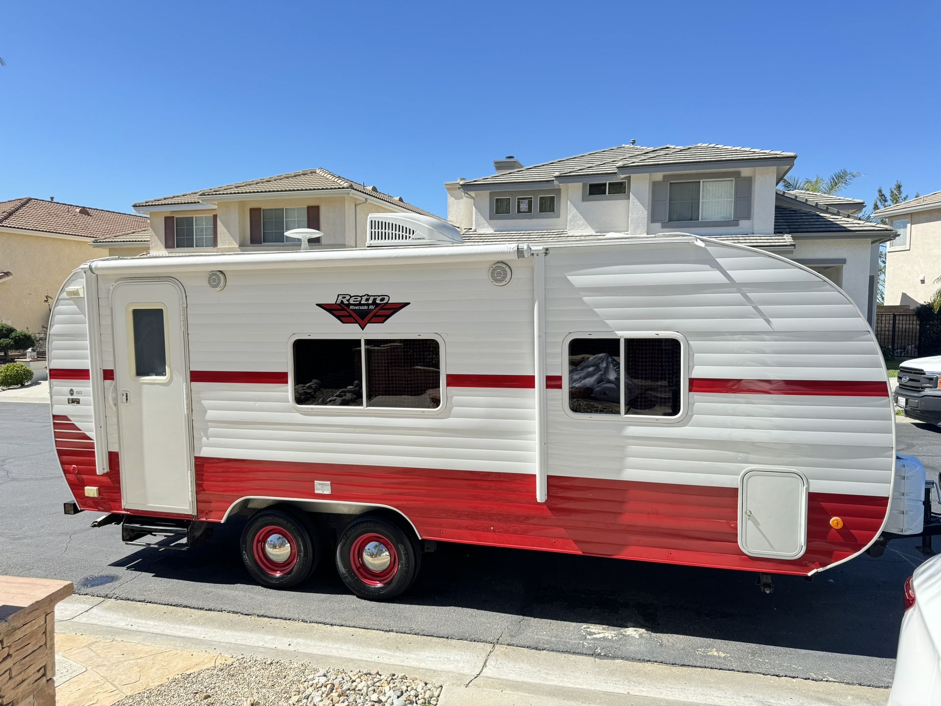 2017 Riverside Retro 189R travel trailer Very good condition and well maintained! Beautiful wood paneling and cabinets Red and white hot rod style dinette Black and white vinyl checkered floor gives this unique trailer a modern yet classic feel Great layout Sleeps 3 Queen walkaround bed Dinette/sleeper Vizio smart Tv included! Full bathroom Upgraded porcelain toilet Shower with tub Outdoor utility shower Kitchen features 2 burner stove Microwave 3/Way Dometic refrigerator A/C and heat both work great Power awning Dual 12v Batteries Dual 5g Propane tanks Dual axle trailer very easy to tow Lightweight at only (3450 Lbs) Total length 23ft from tongue to bumper Blue Ox Hitch and sway bars included Clean title in hand! Asking $13,500 Lowered price for quick sale Please only serious CASH BUYERS! Please come prepared to purchase if interested