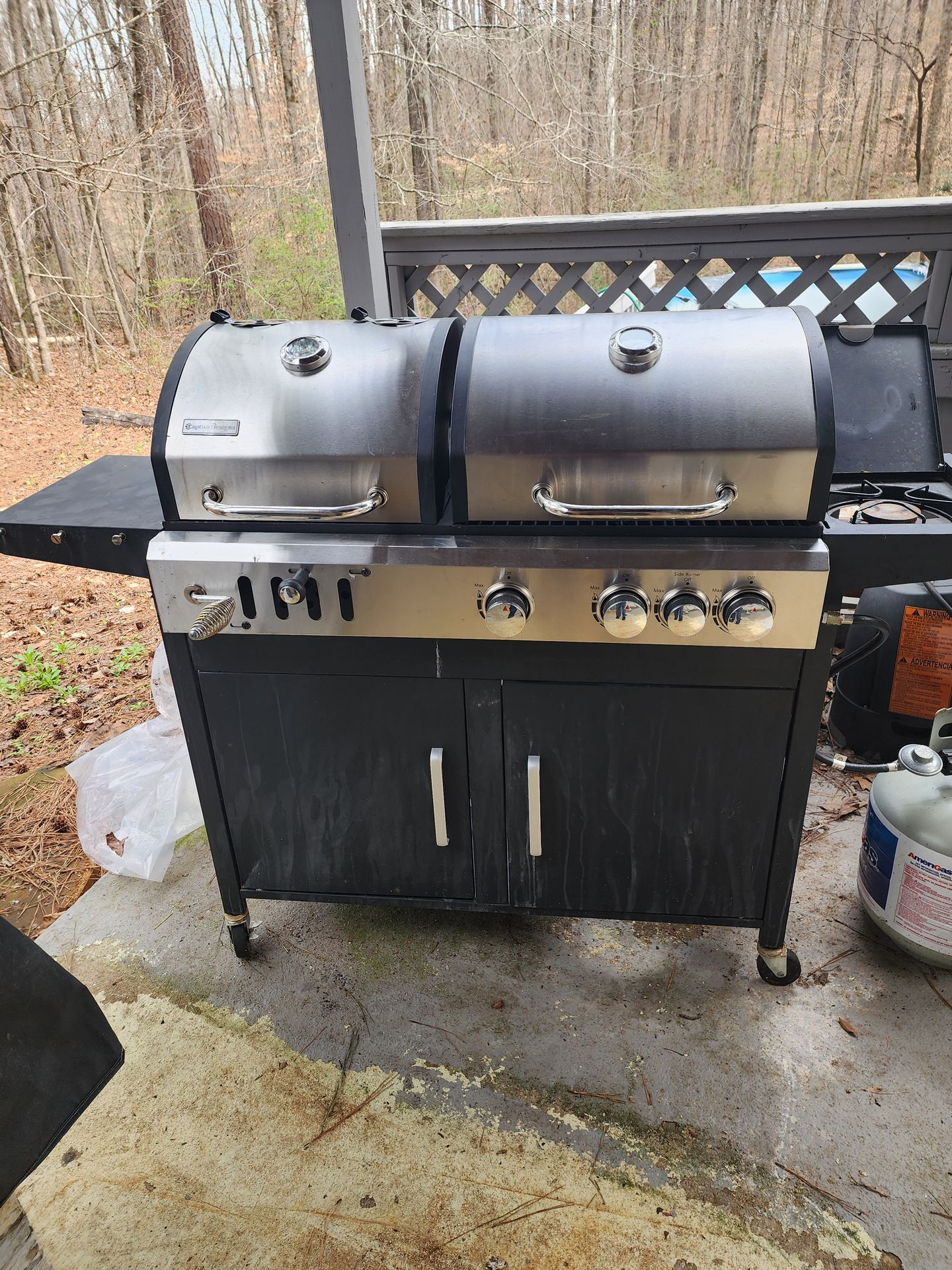 Just in time for spring Like new captiva designs grill Only used twice, when I tried it out.. It's to small for me..my loss your gain Everything works, and in great shape Propane on one side, char coal on other with side burner. I paid $450 last year. Thinking it was bigger .. Perfect for a single person or couple.. $175 obo
