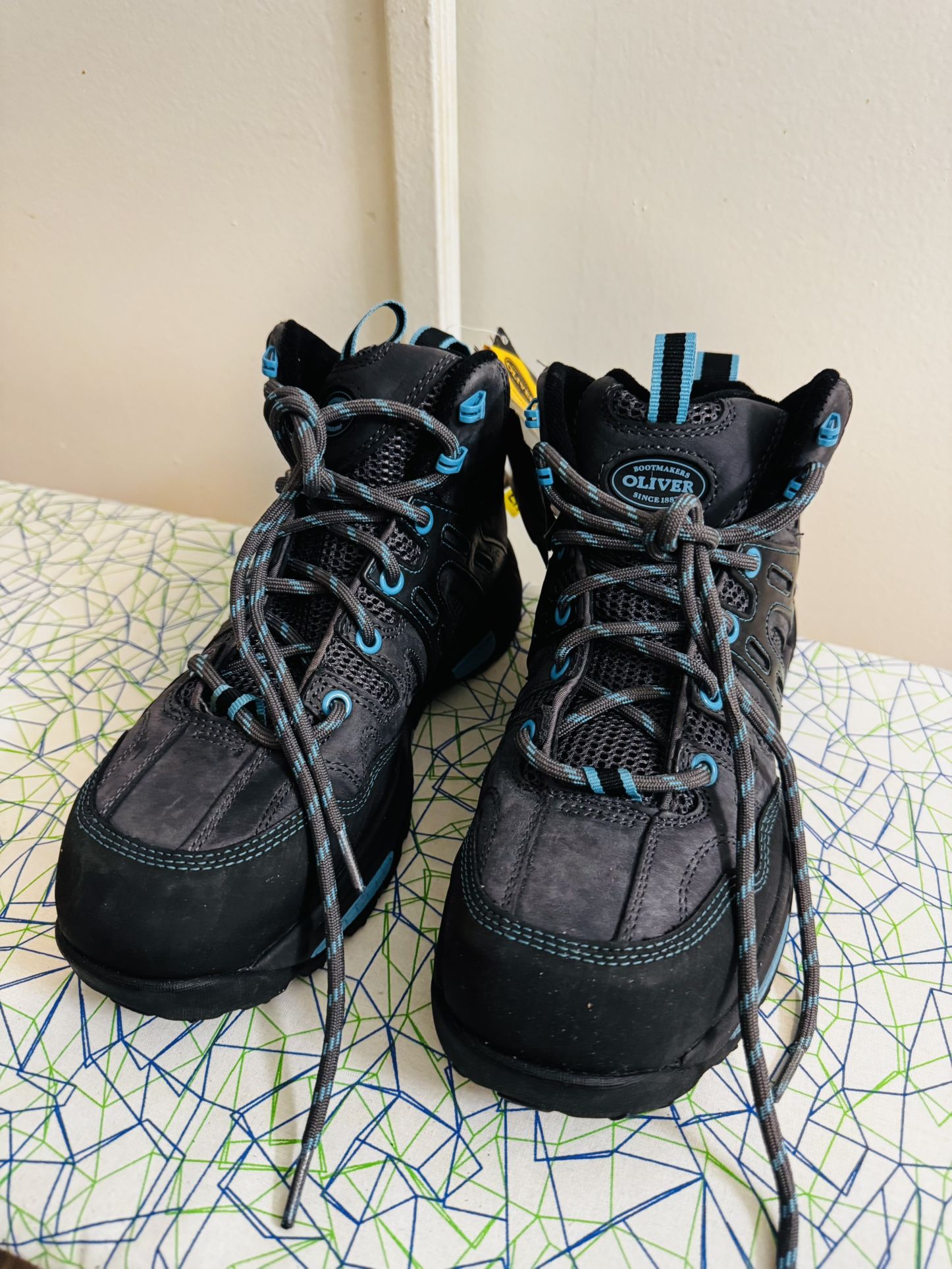 Up for grabs new pair of woman’s working boots. This are size 8.5 steel toe slip resistant, water resistance.