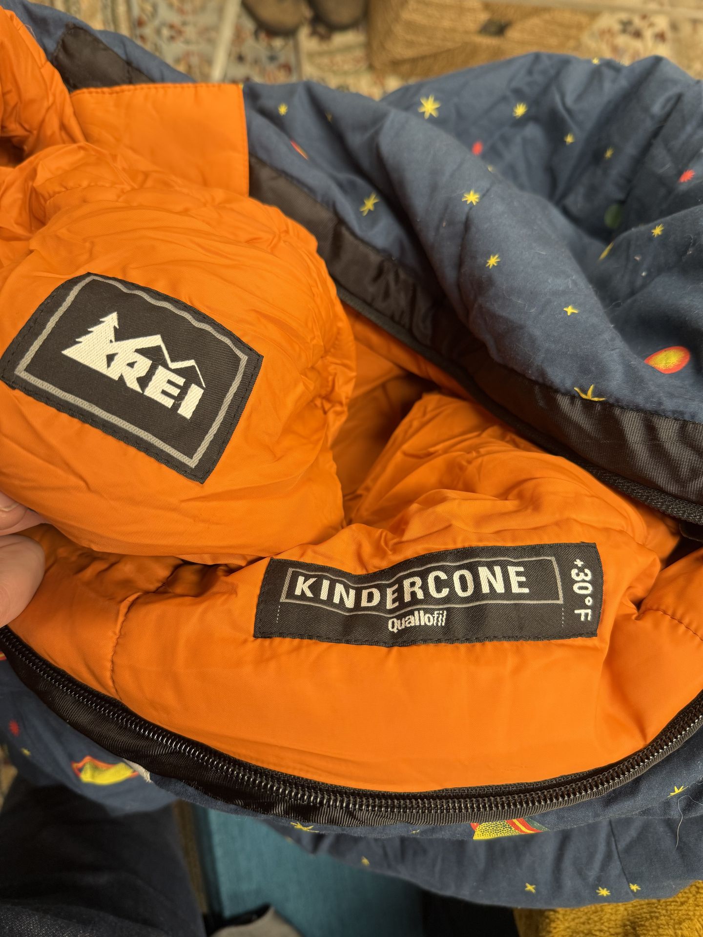 Kids sleeping bag, used but in great shape. Fun star/constellations pattern. Includes stuff sack. Can deliver in N. Seattle