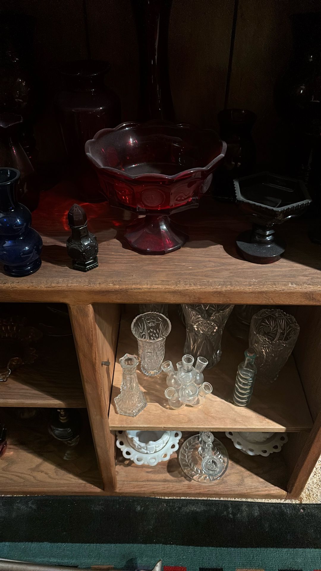 I have a lot of glass ware. Red, blue, green, milk, Some Fenton and bento glass. Also figure glass people. All or just a few pieces. Prices very. (contact info removed). I am in Magalia