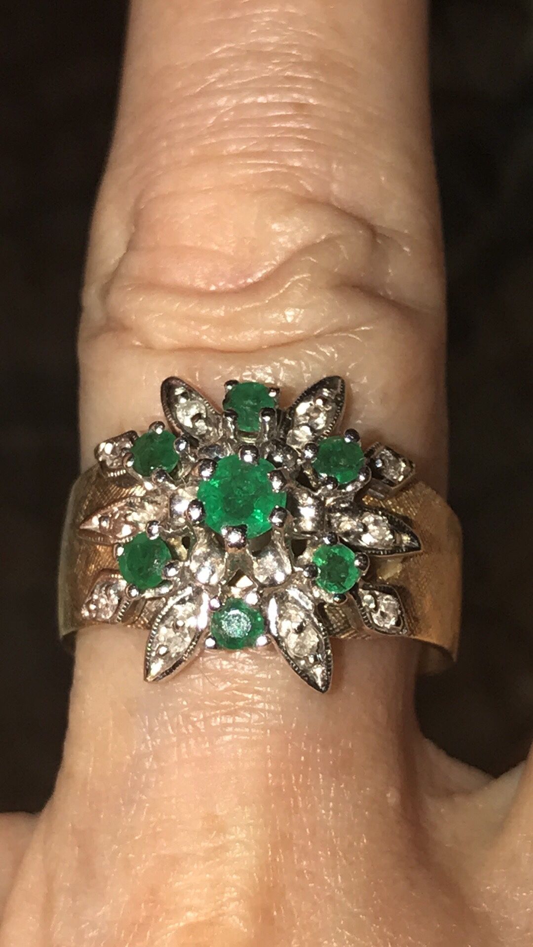 14k gold this ring is a size 8 and the texture goes all the way around the ring it can be sized and have a sizing bar put in the back or can have the texture added back on if sized.