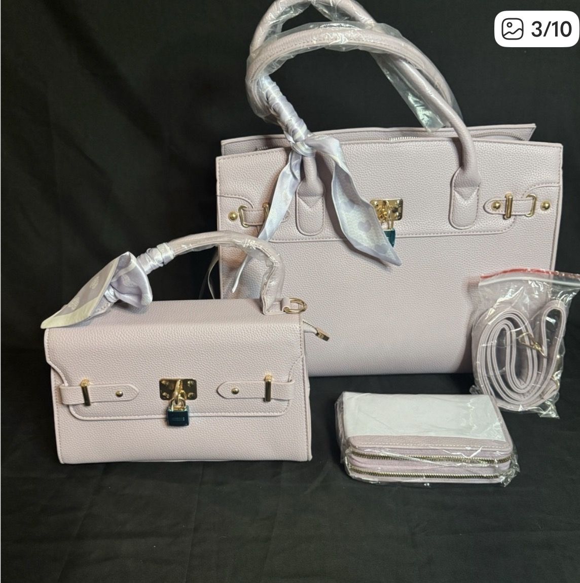 This elegant lavender handbag set is perfect for any occasion. Featuring a stylish design, it offers both functionality and fashion. Make me an offer.