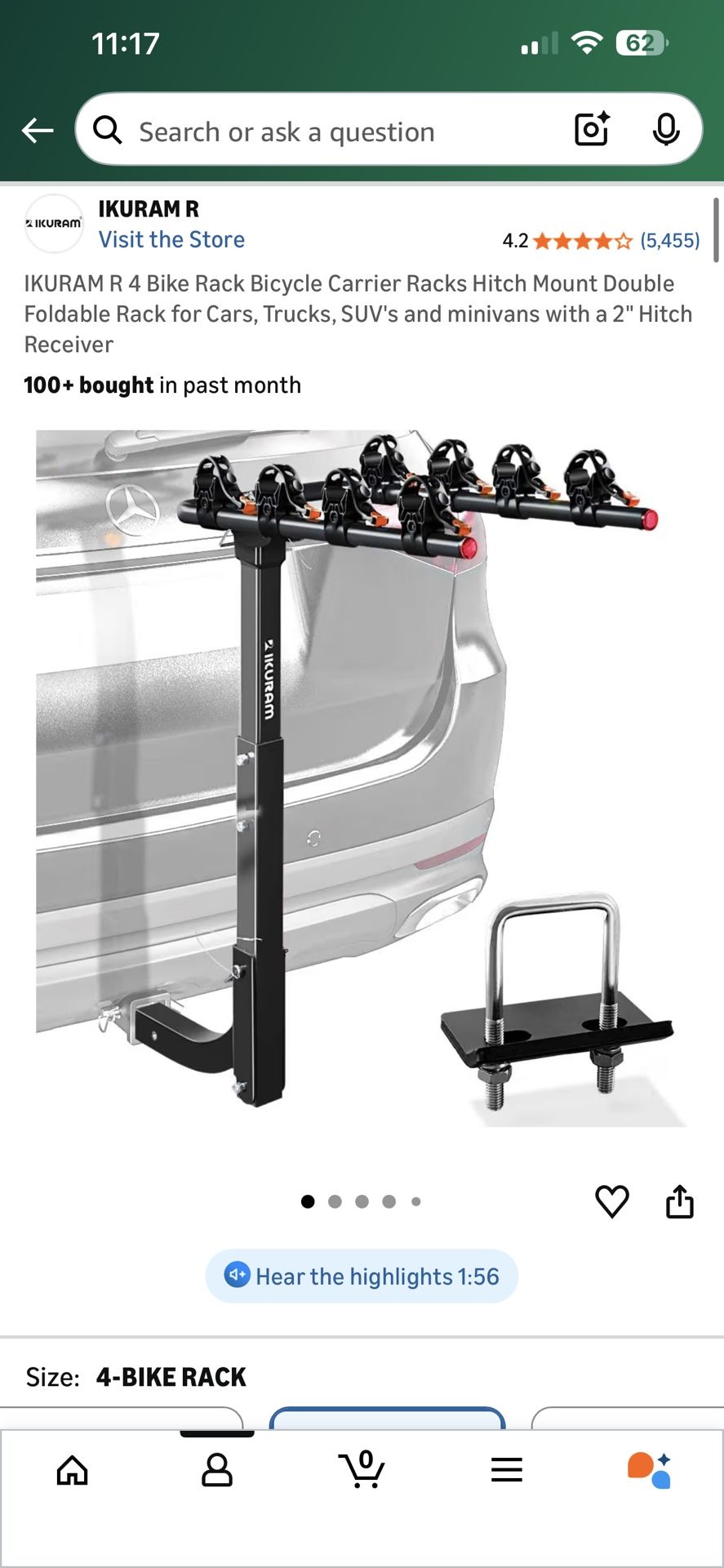 New, never used, never opened, still in box. Rigid All Steel Constructed Bike Hitch Rack: Long-lasting and durable all steel construction with protective powder paint finish. Dual-Arm Mounting Design: Optimized dual-arm bike carrier rack which spacing accommodates bicycles of a wide range of frame sizes and designs, more stable and easily accommodates up to 4 bikes. Easy Tilt-Down Access: Convenient access to rear of vehicle with easy-to-use tilt-down feature. Easy fold-down Arms: Be folded up quickly when bike racks not in use for compact and easy storage. Backed by IKURAM's Lifetime Warranty: All IKURAM bike carrier racks are backed by professional consulting services and warranty. Please visit the IKURAM web site for full details. "4-Bike Rack – Heavy-Duty, Secure & Easy-to-Use Bike Carrier for Your Adventures up to four bikes safely and effortlessly with our premium 4-bike rack—designed for durability, stability, and hassle-free travel. Whether you're heading to a weekend trail, a family cycling trip, or a cross-country adventure, this bike carrier ensures your bicycles stay secure on the road. Why Choose Our 4-Bike Rack? ✔ Sturdy & Reliable Construction – Built with high-quality steel and reinforced straps, our rack holds up to 140 lbs without wobbling or sagging. ✔ Universal Compatibility – Fits most sedans, SUVs, hatchbacks, and trucks with a 2"" hitch receiver. ✔ Easy Loading & Unloading – Features an adjustable tilt mechanism for quick access to your trunk without removing the rack. The design saves space when not in use. ✔ Secure Bike Holders – Soft-grip cradles and anti-sway straps keep bikes stable, preventing scratches and movement during transit. ✔ Built-in Safety – Includes reflectors for enhanced visibility at night. Perfect for Families & Group Rides With space for 4 bikes, this rack is for family outings, group cycling events, or long-distance trips. The weight distribution system ensures even balance, reducing strain on your vehicle.